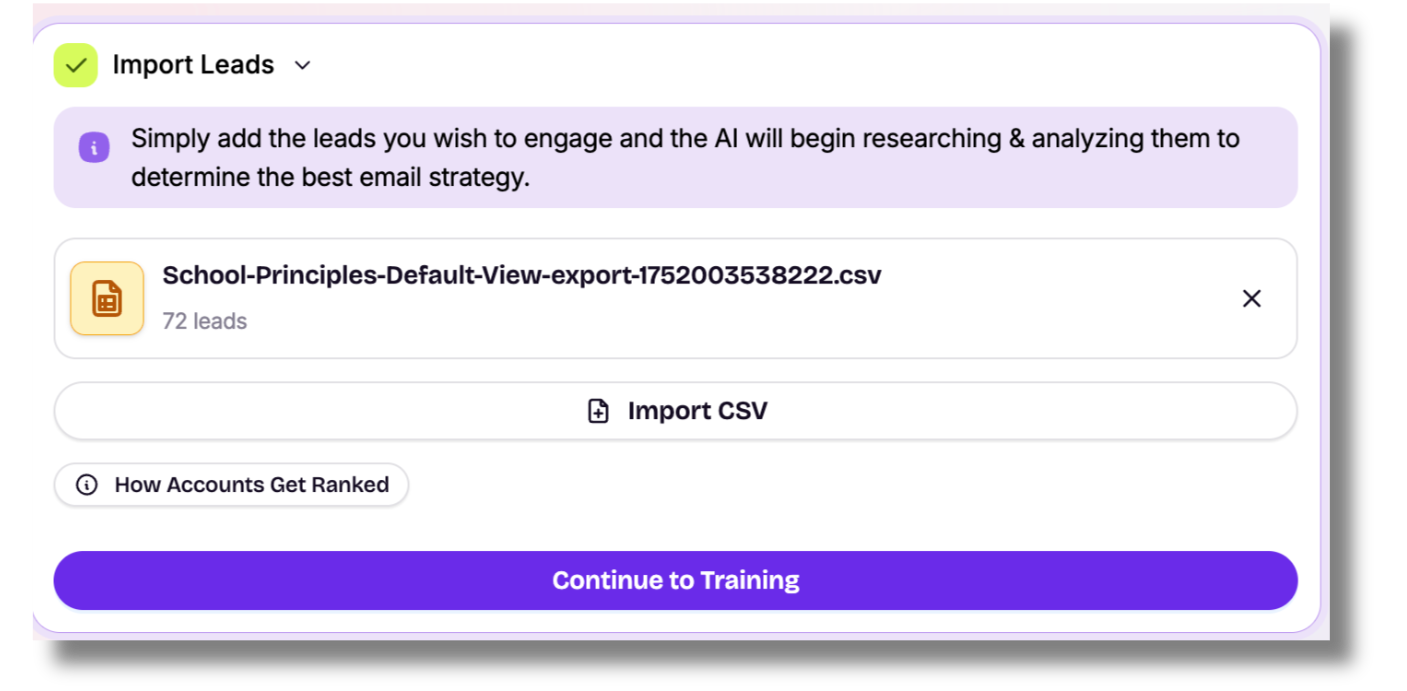 Step 1: After you've uploaded leads, it's time to train Ora on your company