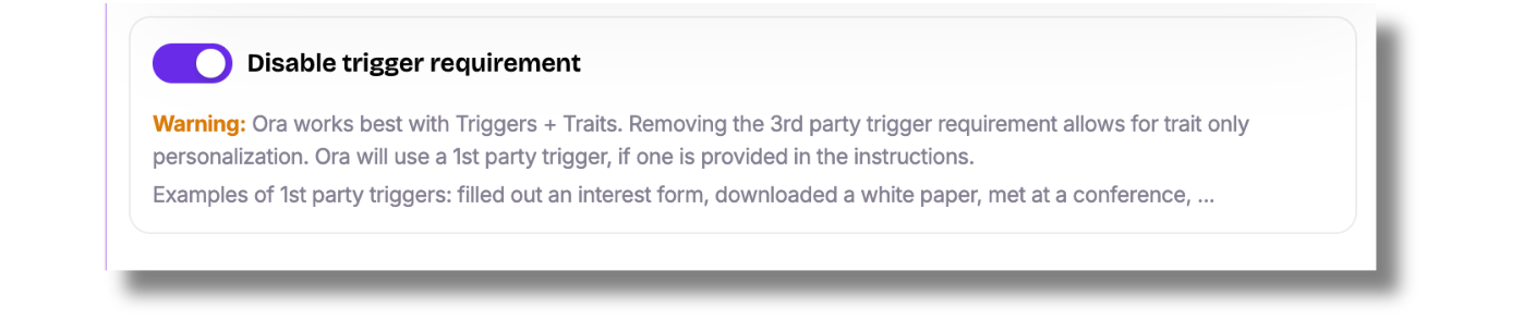 This allows Ora to send emails using traits alone (like role, department, or company size), even if no 3rd-party trigger is found.