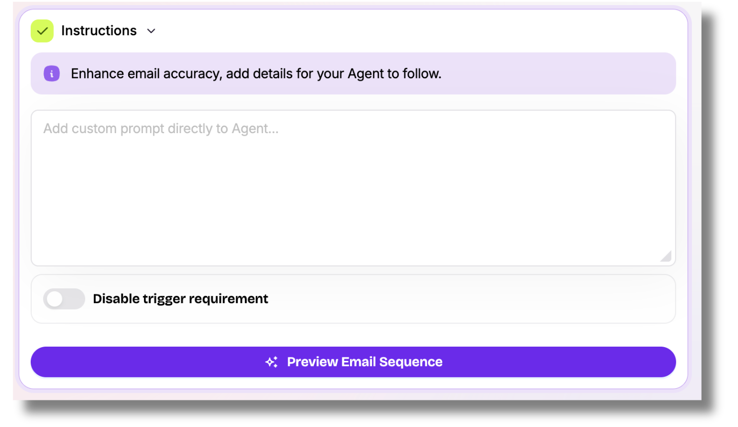 This video walks you through how to input custom instructions, preview emails, and launch your agent.
