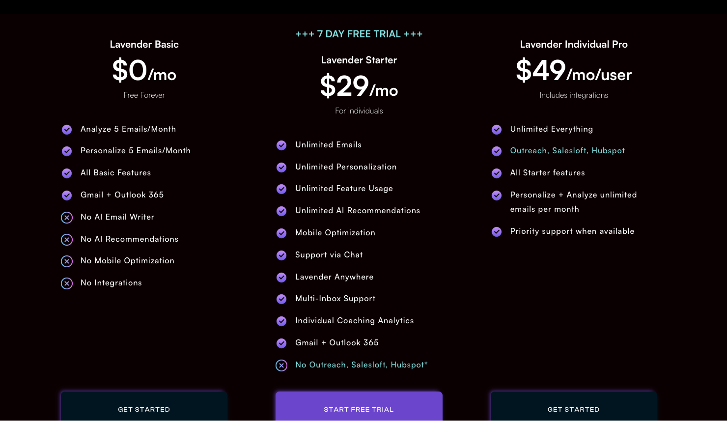 Lavender Pro is for individual users who use more complex integrations like Outreach, Hubspot, or Salesloft.
