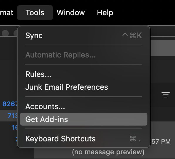 1. Open Outlook and navigate to Tools > Get Add-ins